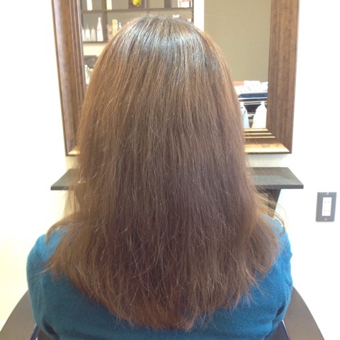 カラー前にヘアエステで髪の毛にたっぷり栄養補給してから全体にイルミナカラーで少しトーンダウンしました。