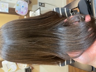 まだ縮毛矯正は持ちそうだったのでカラー前と後にダメージ補修と油分を入れてボリュームダウン。