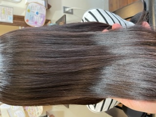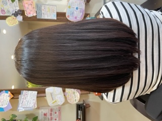縮毛矯正をされていて少しパサつきが気になりイルミナカラーのオーキッド(バイオレット)でトーンダウン