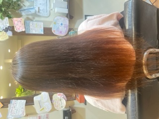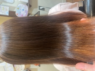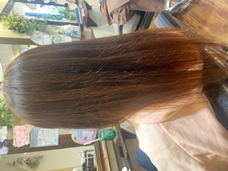 かなり切れ毛があったので今回は根元から10センチほど縮毛矯正であとはヘアエステで補修。