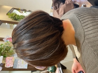 ばっさり切ったので今回少し明るめでイルミナカラーのベージュ系でトーンアップ