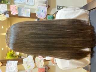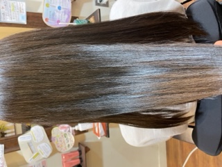 クセも少しありますがロングヘアーの髪の重みも生かして髪の内部補修とキューティクル保護でボリュームもダウン。