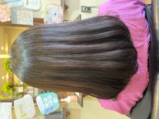 今回は半年ぶりの縮毛矯正で根元のうねりをしっかり伸ばしつつ全体はヘアエステでダメージ補修。
