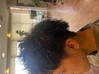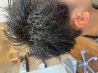 サイドバックはツーブロックに刈り上げて全体に少し強めのツイストスパイラルパーマ!