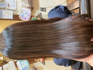 4か月ぶりにご来店でくせでごわつくので縮毛矯正後イルミナカラーでトーンダウン