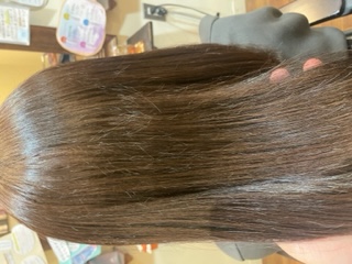 縮毛矯正前にまずカラーで色を整えてから縮毛矯正とかなり乾燥気味だったので水分補給もかねてヘアエステで補修。
